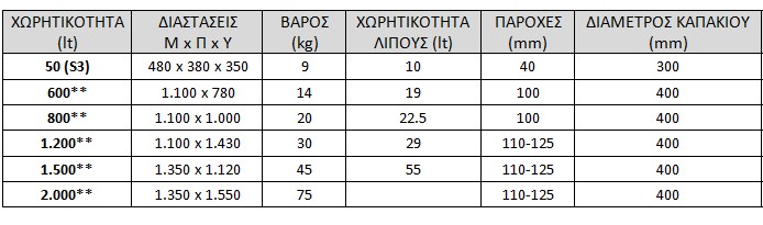 *Η τελική τιμή της δεξαμενής διαμορφώνεται κατόπιν υπολογισμού του κόστους μεταφοράς